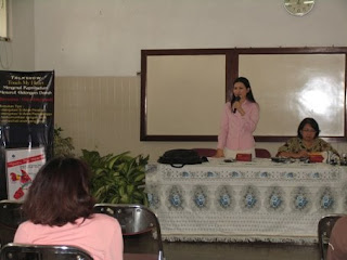 Wah,.... baru kali ini saya merasa sangat tegang. Bukan karena saya tidak persiapan, tapi karena infocus yang digunakan tidak bisa nyambung dengan laptop yang saya bawa. Setelah beberapa kali dicoba, malah komputer saya yang mati terus setiap kali disambungkan ke infocus.
